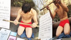 พ่อชาวจีนคุกเข่าขอทานในปักกิ่ง ยอมให้คนใช้ไม้เฆี่ยนตีหวังหาเงิน 100,000หยวนไปรักษาลูกที่ป่วยตาจะบอด