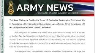 ทบ.แจงสถานะ“เชลยศึก” 20 ทหารกัมพูชา ยันยึดหลักมนุษยธรรมสากลแถมดูแลดี จะส่งกลับเมื่อสถานการณ์ความขัดแย้งด้วยอาวุธยุติลงโดยสมบูรณ์