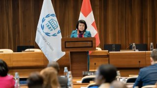 ชาวเขมรรวมตัวชุมนุมประท้วง หน้าสำนักงานสหประชาชาติในเจนีวา