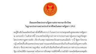 ถ้อยแถลงโดยประธานรัฐสภาแห่งราชอาณาจักรไทย ในฐานะประธานหน่วยประจำชาติไทยในสหภาพรัฐสภา