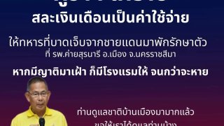 ผู้ว่าฯ โคราช สละเงินเดือนให้พี่น้องทหารที่บาดเจ็บจากแนวชายแดน มาพักรักษาตัวที่โรงพยาบาลค่ายสุรนารี จ.นครราชสีมา