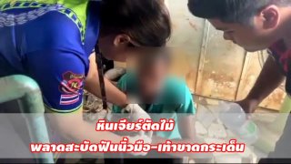 อุทาหรณ์! ช่างหนุ่มใช้หินเจียร์ตัดไม้ พลาดสะบัดฟันนิ้วมือ-เท้าขาดกระเด็น