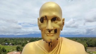 ผึ้งหลวงนับหมื่นตัวทำรังบนองค์หลวงปู่ดู่ ชาวบ้านเชื่อเป็นนิมิตแห่งบุญและโชคลาภ